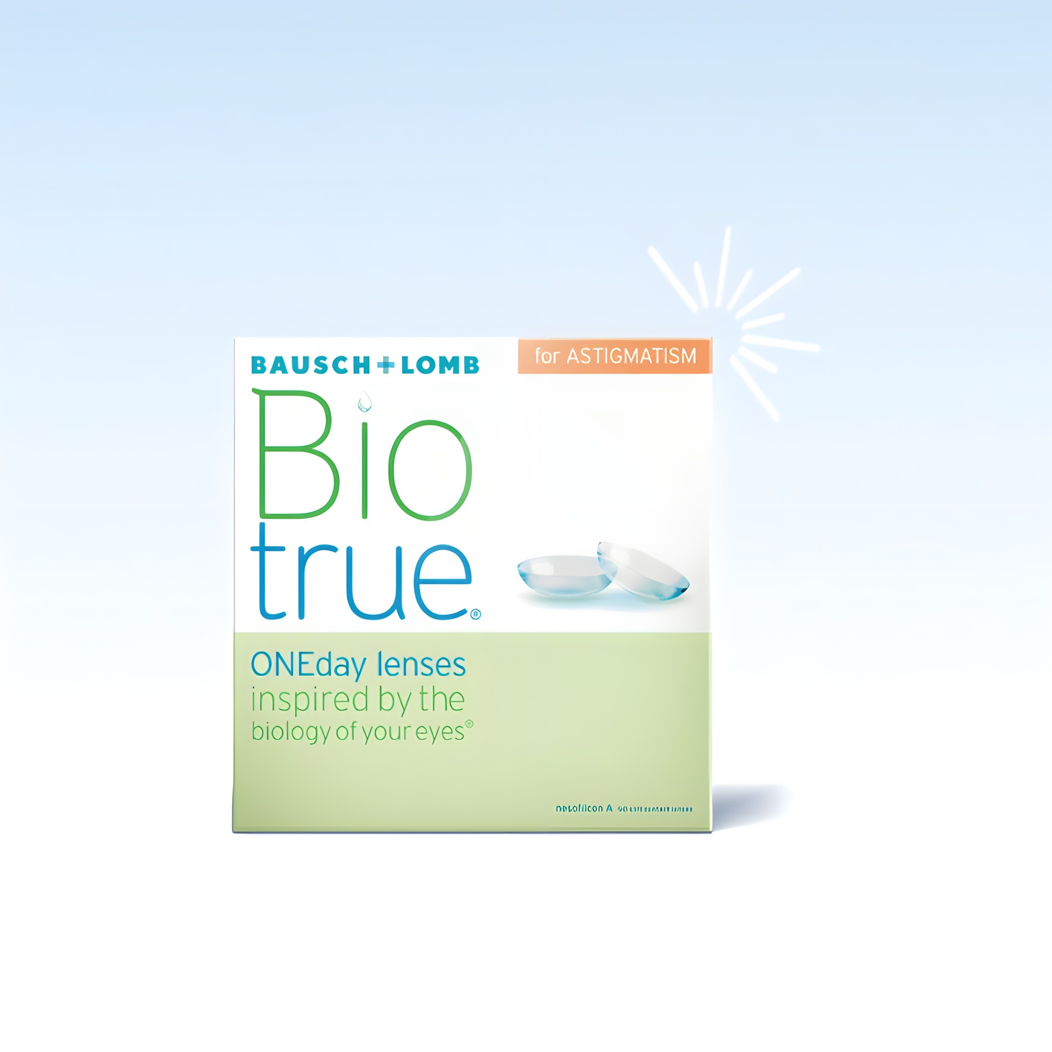 Ideal for people with astigmatism and sensitive or dry eyes, Biotrue ONEday lenses provide consistent orientation for steady vision, even during eye or head movements. Plus, they offer UVA/UVB protection and the convenience of daily disposables—no cleaning or storage required.